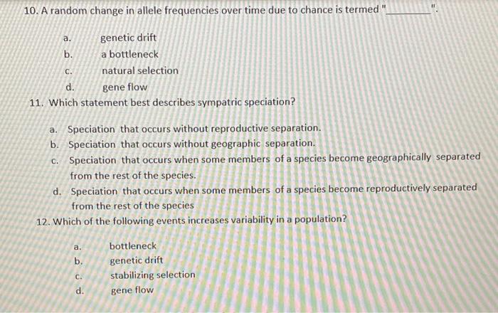 Solved A C 10 A Random Change In Allele Frequencies Over Chegg Com